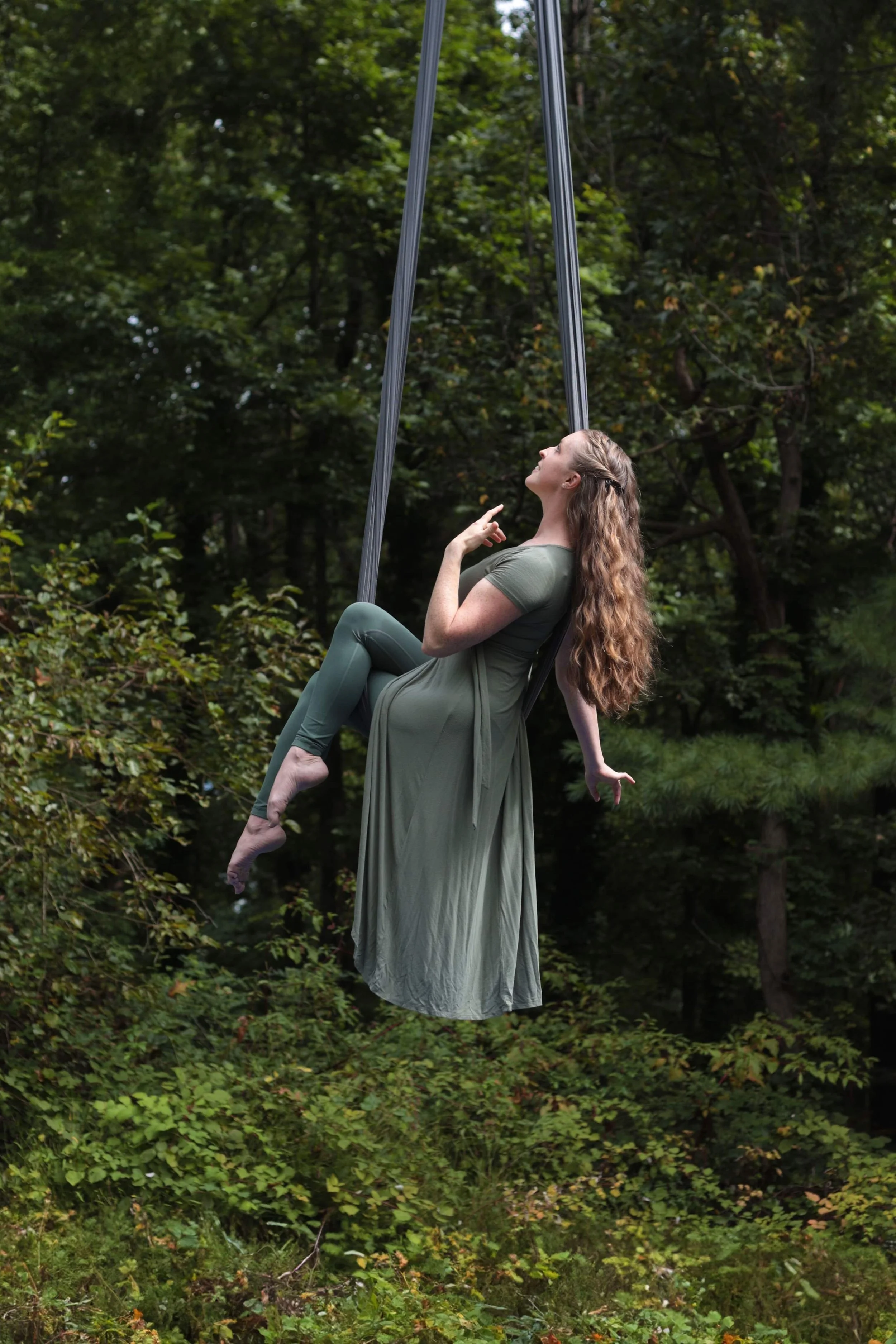 Danya has dabbled in and tried nearly every form of dance she can get her hands on, but aerial dance was the one that stole her heart. A transplant to the DC region during the peak COVID days, she hails from the other Washington where she trained and taught at Versatile Arts in Seattle. Danya loves the combination of physicality and expression that aerial arts offer, and has a particular affinity for dynamic movement on vertical apparatuses (fabric and rope) but occasionally can also be seen noodling around on a hammock, trapeze, or lyra. You can find her on Instagram at @dvolkov6 where she promises to post content at least twice a year.